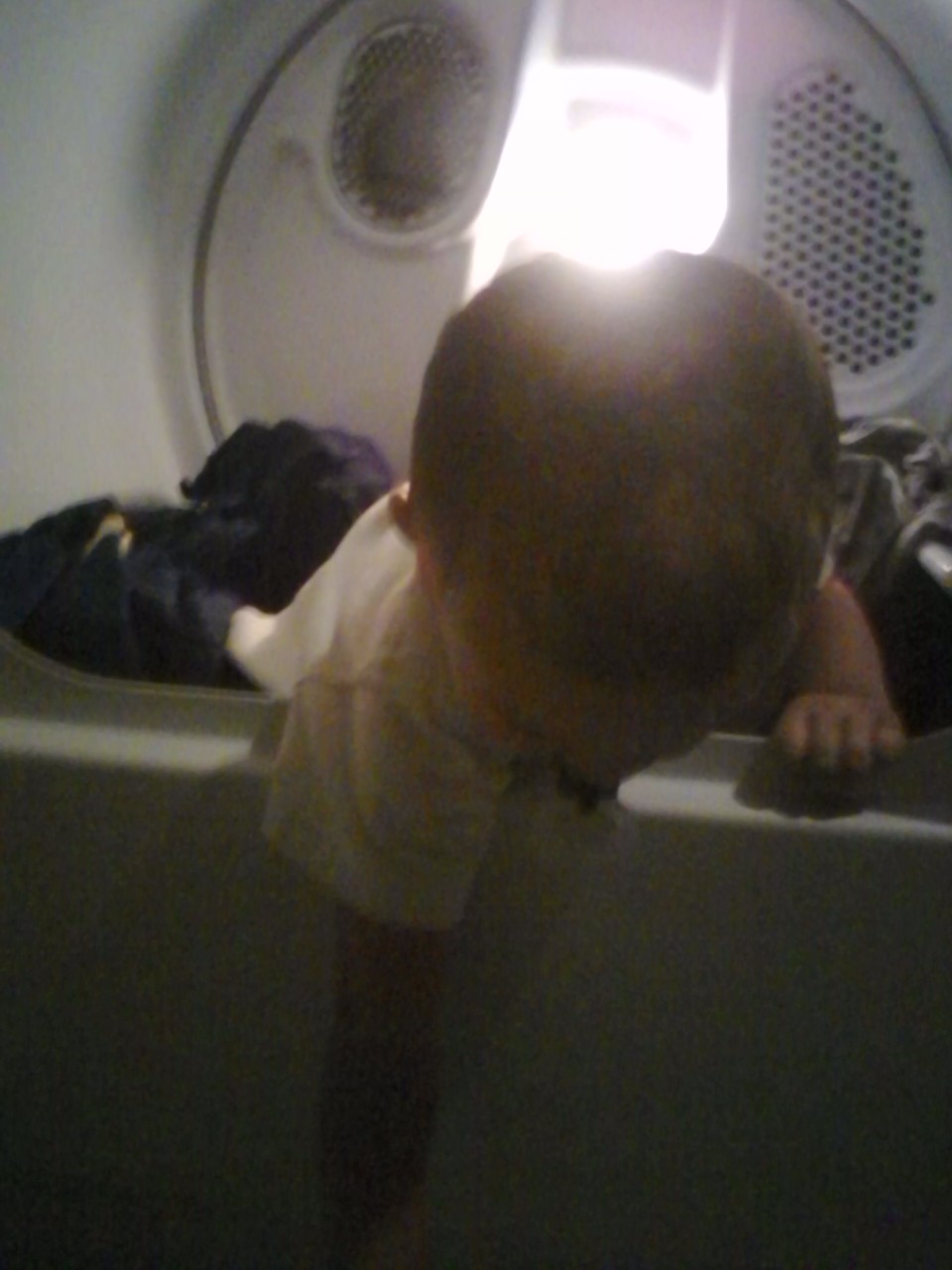 No, I did NOT put Clayton in the dryer (That was Darrel's first question when he saw the pictures) He climbed in on his own . . .